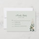 Coordinate your stationery suite with this elegant soft sage green floral wedding RSVP card. Adorned with watercolor greenery and ivory florals, it blends timeless botanical charm with modern simplicity. The refined typography and layout make it easy for guests to reply while keeping your wedding theme cohesive and sophisticated. Perfect for garden, rustic, or fine art weddings, this RSVP card complements any neutral or nature-inspired palette.