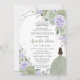 Soft Sage Green Purple Floral Silver Quinceañera Invitation
