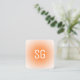 A square business card template with initials placed on a soft circular spot. Name and profession/job title along with telephone, email and website address in black on the reverse side on a white background. This template is also a good starting point for further customisation.