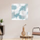 Soft Teal Grey & White Abstract Brushstrokes Poster
