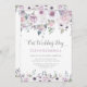 Soft florals in muted tones of violet, lavender, and purple with white floral accents and lush matching greenery. The text boxes are easy to change with your own text using a mix of handwritten calligraphy and modern fonts. There's a quote on the back that you can leave as is, add your own, or leave blank.
