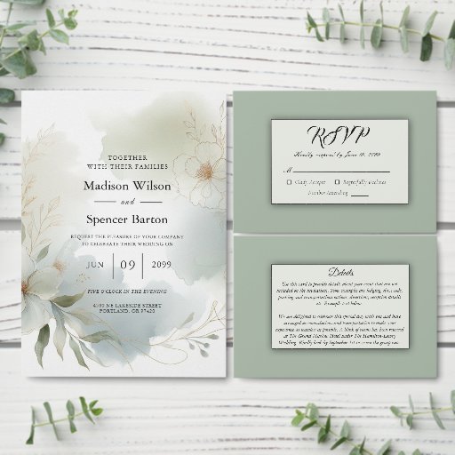 Soft Watercolor Floral Sage Green Wedding Invitation