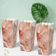 Fluid waves of blush and peach ripple across a glossy surface, adorned with golden veins and scattered droplets.