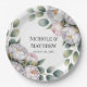 Soft White Peony with Eucalyptus Leaves Wedding Paper Plate