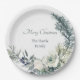 Soft winter greenery personalised Christmas Paper Plate