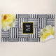 Soft Yellow Roses Black and White Block Stripes Beach Towel