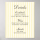 Invite your guests to a sophisticated celebration with our elegant Bridal Soirée downloadable bar menu poster, where timeless elegance meets modern charm. This beautifully crafted poster features a serene soft yellow striped backdrop, offering a warm and inviting canvas that exudes elegance and sophistication. Gentle stripes add a subtle texture, enhancing the overall aesthetic while maintaining a classic appeal.