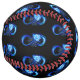 Luminous infinity symbol with glowing, beautiful, lushly blooming rose made of blue flames on black background.