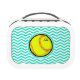 Cool, cute yellow softball design on aqua, turquoise green and white chevron stripes pattern. Great gift for softball players or sports fans!