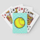 Cool, cute yellow softball design on aqua, turquoise green and white chevron stripes pattern. Great gift for softball players or sports fans!