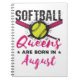 Softball birthday design is perfect for women or girls with an August birthday who love to play softball. Softball player design for ladies says, "Softball queens are born in August."