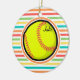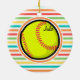 Softball; Bright Rainbow Stripes Ceramic Tree Decoration