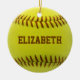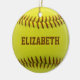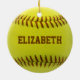 Softball Custom Ball Ornament yellow ball with brown text you can personalise with your own name. Perfect gift to softball player