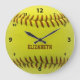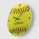 Softball Custom Ball Wall Clock yellow ball with brown text you can personalise with your own name. Perfect gift to softball player