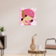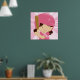 A cute design featuring a softball player wearing a pink and white uniform and holding a softball bat. The background features a starburst in shades of pink. Perfect for the young girl who loves baseball and/or softball.