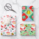 Creative softball Christmas gift wrap featuring funny Santa softball player and holiday candy pattern.
