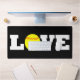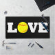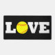 A fun softball LOVE desk mat for any softball player or softball coach, with LOVE in bold white text and a fastpitch softball graphic in place of the O. Great for home or in the softball coach's office.