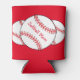 This can cooler features red and white softballs surrounded by a red background. The text reads: Softball Mum. Easily customise the text for a special sports fan or remove entirely. Great for Mother's Day or any time of year!