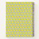 Softballs create a bright polka dot pattern on a blue background on the front and back of this notebook. On the front, softball bats are also used to create a further pattern, and there is a white band for you to personalise with a name or other text.