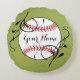 Throw pillow with a baseball or softball graphic and your name or other text. Colour is customisable. This pillow has other matching items such as a duvet, desk accessories, mouse pad, table lamp, and more sold separately. Designed by HAMbyWhiteGlove aka HAMbWG, fulfilled by Zazzle. Green
