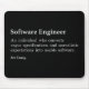 This humorous mouse pad defines what a software engineer is: "An individual who converts vague specifications and unrealistic expectations into usable software."