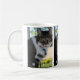 This mug shows our gorgeous tabby cat with beautiful green eyes. Softy is sitting by the window enjoying the cool breeze on her face.