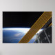 Solar array panels on the International Space Station backdropped against Earth's horizon featured with STS-126.
