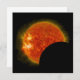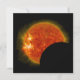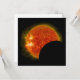 The dark shadow of the moon crosses in front of the sun during a solar eclipse captured in space and enhanced in this image.
