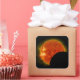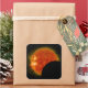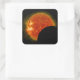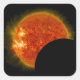 The dark shadow of the moon crosses in front of the sun during a solar eclipse captured in space and enhanced in this image.
