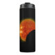 The dark shadow of the moon crosses in front of the sun during a solar eclipse captured in space and enhanced in this image.