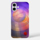 This case has an artistic abstract cosmic design with geometric shapes and beautiful, transparent / watercolor like colours (purple, yellow, orange). This product can be customised by adding text.