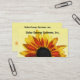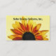 This business card is an advertisement for a solar energy equipment and installation company. The front features a beautiful orange, yellow and gold sunflower wide open against a pale yellow background. All text can be customised to fit your personal business needs.