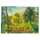 watercolor on silk - manual equipment. Autumn golden.Warm sunshine make the way through oak leaves.Artist by Zolotareva.