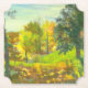 painting watercolor on silk - manual drawing. Artist by Zolotareva. Autumn golden. Amazing scenery.Warm sunshine make the way through oak leaves.