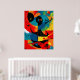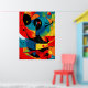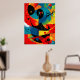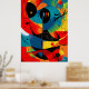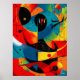 Dynamic curved shapes in teal, red, and amber evoke the warmth of a solar eclipse. This mid-century abstract composition bridges Bauhaus precision and freeform motion, ideal for modern interiors and creative spaces. Printed in vibrant tones for maximum visual depth and contemporary style.