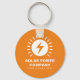 Solar power keychain with custom business name. Custom key chain template design for solar power panel installer or electrical specialist. Modern sun light with bolt icon logo. Add your own personalised slogan and company name. Renewable energy logo.