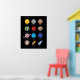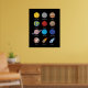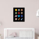 Poster of the solar system and the planets in outer space. Cute and colourful cartoon drawing.