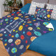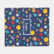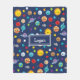 Celebrate the solar system with this cheerful outer space themed fleece blanket. Blanket has a happy sun, happy planets (Mercury, Venus, Earth, Mars, Jupiter, Saturn, Uranus, and Neptune), as well as happy dwarf planet Pluto, asteroids, and stars. Personalise the blanket with your young space lover's first name.