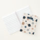 Love space? This notebook makes a great custom touch to your school desk or home office. The pattern has drawings of planets Mercury, Venus, Earth, Mars, Jupiter, Saturn, Uranus, and Neptune, as well as a drawing of the moon. The drawings are sketched in boho style and the colours are in shades of brown and blue. Notebook may be personalised with a name or other text.