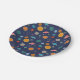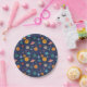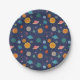 A fun and modern solar system pattern with colourful planet, star and sun illustrations against a dark blue background.