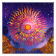 “Solar Whispers in the Sky” The Sun. A surreal depiction of the sun, its vibrant energy whispering secrets to the universe through intricate patterns and sacred geometry. Colours of red, orange, yellow and blue are balanced and create a design of other otherworldly presence.