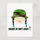 This design features a cute girl with pig tails and blue bows. Green make-up, pink lips, and an army helmet really make her come to life. The words "Soldier of God's Army are written in black lettering with a green outline. You can even customise this design by adding your own text to it