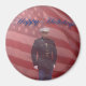 Hold your important holiday dates on your refrig with this military magnet depicting a dressed blue soldier standing proudly in front of a waving American flag wishing everyone a Happy Holiday!