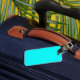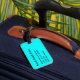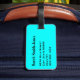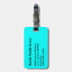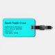Luggage tag with name and address on a solid aqua blue background colour. Personalise with your name and address information using the easy templates. Font colour, font style, and font size are customisable.