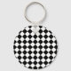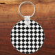 Solid Black and White Chevron Pattern Round Key Ring