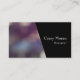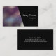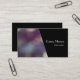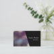 This business card design is perfect for sophisticated, unique professionals in a variety of creative industries. On the left side is a bokeh photo with blue, purple/maroon, a hint of green, and creamy gold hues. On the right is a solid black overlay that cuts across the photo in a diagonal angle. White text presents your name and title. The back of the card shows your contact details in white on a solid black background.