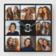 Solid Black Photo Collage Custom Monogram Square Wall Clock