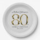 Solid Gold 80th Eightieth Text Light Grey Elegant Paper Plate