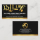Just above the gold stripe lies your business name, a slogan to publicise your services and the contact details.