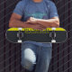 This solid two-colour design offers a base painted with dark grey accompanied by a bright yellow edge. You can customise the name on the board.
